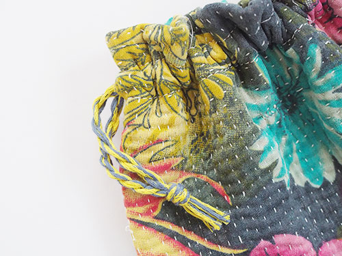 オールドラリーキルトの巾着ポーチ