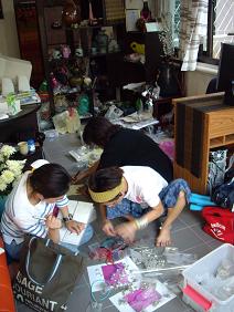 | 2006/7/4 2-2 バイオレンス彼氏の話を聞いて、軽く慰めてから、ランチを食べることにしました。 社長は、ブツブツと「彼氏がいて、10歳の娘かぁ〜・・・」と、ランチのメニューを前にするまで、つぶやいていました。 (~_~;) ランチは、タイラーメンでした。 これもまた、毎度行く食堂です。 社長のお薦めにより、カオソイ・チキンをオーダーしたのですが、チキンが売り切れていて、ポークにしました。でも美味しいぃ。 (^・^) ホテルに戻って、近所のクリーニング屋に洗濯物を出しました。 全部で2kg、300円くらいでした。1日半で、出来上がるそうです。 その後も、仕入れは続きますっ! (あ、遊んでいませんっ!! (^^ゞ ) シルクのお店を見つけました。 ニュアンスのある色合いも揃っていて、シルク生地も気に入りましたので、スカートなど オーダーしました。 細かい注文も聞いてくれて、グッドフィーリングです。 今回の仕入旅で、一番の収穫かも♪ です。 その後、ジョムトンの布を探して、お店のハシゴをしました。 ある迷路のようになったお店に入って、出てきたときには、足の裏がマツクロ(真っ黒)でした! (>_<) いつも素材を買う店の入り口から靴を脱いで入って、二階に行きました。 二階は横に、斜めに部屋がありまして、その後エレベーターに乗せられました。 多分・・・下に降りたような気がします。 そこで更に斜めに部屋があり、その部屋は天井がやたら高く、上はどうやって商品を見るの? というくらい高くて、しかも商品がビニールで巻かれています。 本当に売る気があるのでしょうか? 見るだけで、疲れてしまって・・・、結局そこでは、何も買い物をしていません。 そのお店には、80歳くらいのご婦人が二人、店頭にいつも座っています。 そしていつもお供えのように、食べ物がお二人の前に置いてあります。 常に何かを食べているのですが、無くなるとすぐ次の何かが置かれます。 でも仕事はしています。 支払いのときは、店員さんがその人のところへ行って、チェックを受けるようです。 値段の交渉も、店員さんがお二人に「あそこの日本人が、もっと安くしろって〜・・・」 と、イイツケに言っています。 (~_~;) 気を取り直して(?)タイで、社長と私が大好きなレストランに行きました。 市場の中にあるのですが、その市場が近々なくなるとか? 信憑性は無いのですが、困ったハナシです! 生姜と、にんにくソースのかかった海老と、空芯菜炒め、鶏肉バジル炒め、ソムタム、もち米 注文しすぎですよね、全部食べられませんでした。。。 ゴメンナサイ。 とにかくここの、この海老料理は、絶品ですっ。 バンコックの有名シーフードレストランにも行きましたが、ここの方が美味しいです。 食事が終わって、ホテルの向かいにある売店のようなマッサージ屋に行きました。足マッサージをやってもらったのですが、椅子は悪いし、明るすぎて、頭痛がしてきました。 隣にいた韓国人カップルは、ずっと手をつないでいました。 男性は辛そうでした。 本日頭痛で、早く寝ます〜。 (*_*) |