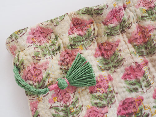 オールドラリーキルトの巾着ポーチ