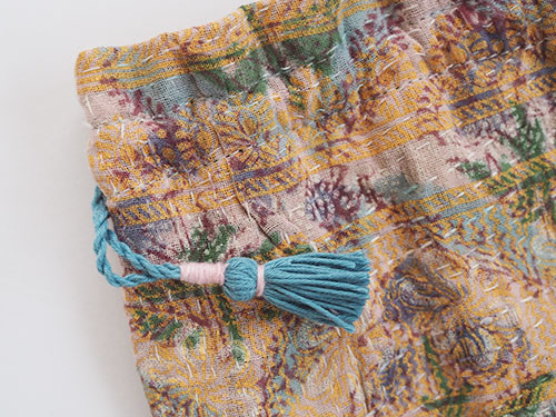 オールドラリーキルトの巾着ポーチ